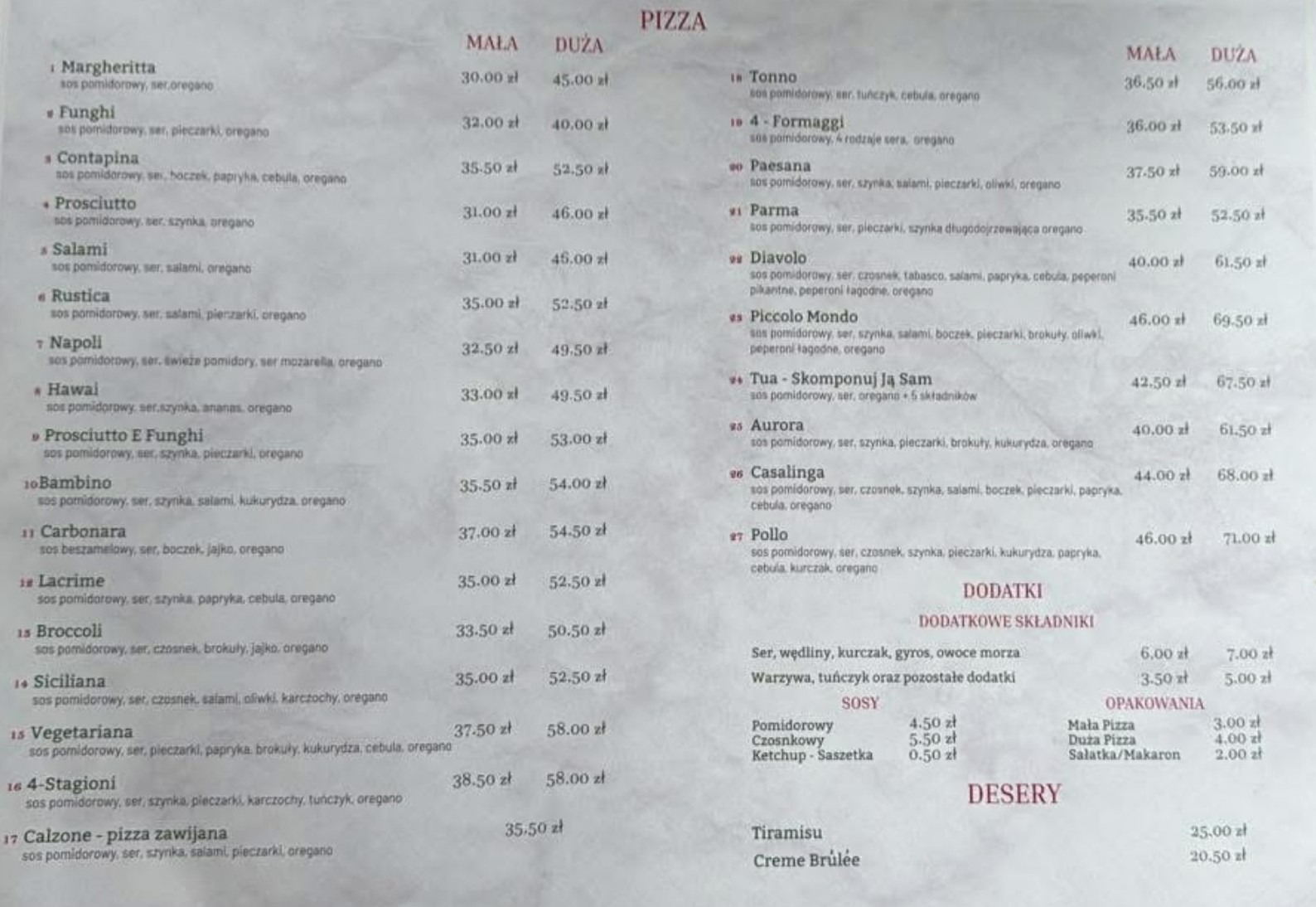 Klasyczne pizze, aromatyczne makarony, świeże sałatki i coś słodkiego na deser – wszystko to znajdziesz w naszej ofercie, przygotowanej z sercem i pasją do włoskiej kuchni.